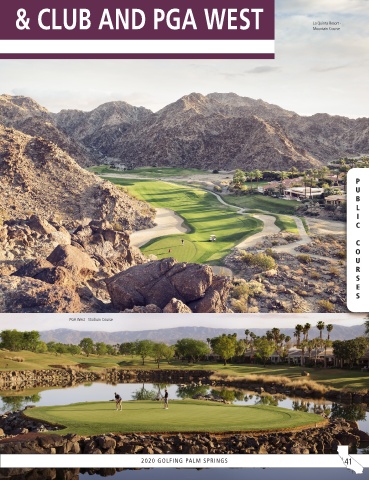 LA QUINTA RESORT & CLUB AND PGA WEST La Quinta Resort - Mountain Course region: La Quinta | course type: Resort & Private P U B L I C C O U R S E S PGA West - Stadium Course WWW.GOLFINGPALMSPRINGSMAGAZINE.COM 2020 GOLFING PALM SPRINGS 41