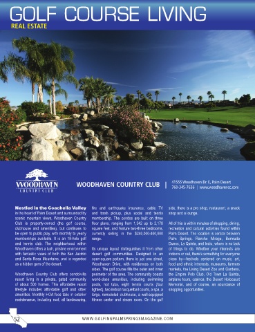 Woodhaven Country Club offers condo/villa perimeter of the area. The community boasts the Empire Polo Club, Old Town La Quinta,