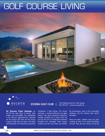 will find the ideal blend of scenery, style, clubhouse, a stunning white-steel and glass landscape and the towering San Jacinto