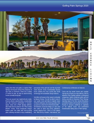 setting from their own patios or explore Palm panoramas of the golf club and the mountain Contemporary architecture are featured.