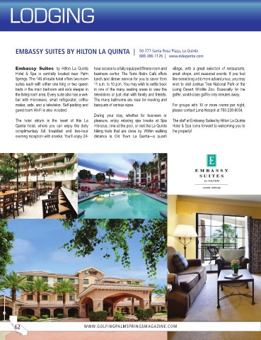62 WWW.GOLFINGPALMSPRINGSMAGAZINE.COM