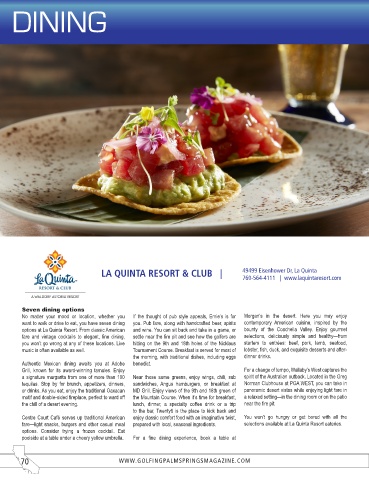 70 WWW.GOLFINGPALMSPRINGSMAGAZINE.COM