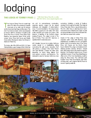 he Lodge at Torrey Pines is located high era with its post-and-beam construction, exclusively, including a variety of boutique
