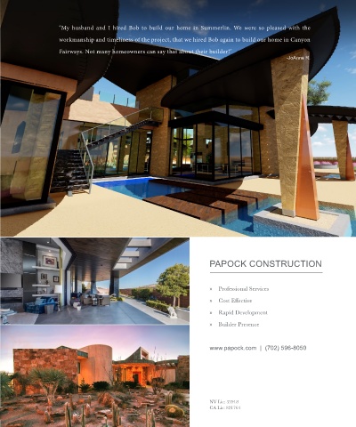 "My husband and I hired Bob to build our home in Summerlin. We were so pleased with the