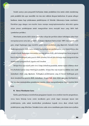 guru, tetapi lingkungan juga memiliki peran dalam perubahan yang diperoleh. Semakin baik
