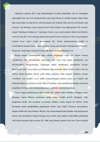 Quantum Learning (QL) yang dikembangkan di dunia pendidikan saat ini merupakan