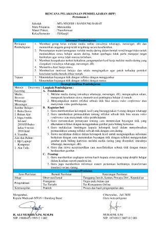 2. Alat Tulis 6. Guru dan siswa menyimpulkan cara merefleksikan sebuah titik dengan rumus