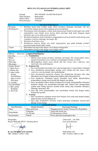 2. Alat Tulis 6. Guru dan siswa menyimpulkan cara merotasikan sebuah titik dengan rumus