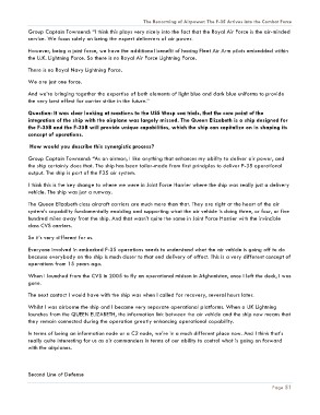 integration of the ship with the airplane was largely missed. The Queen Elizabeth is a ship designed for