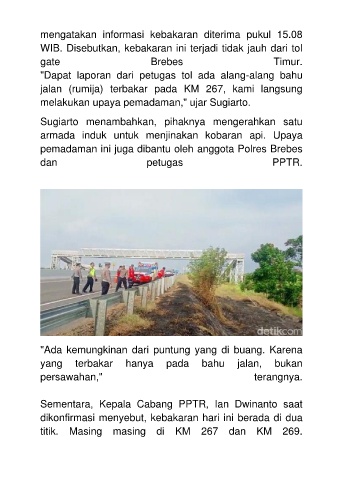 "Dapat laporan dari petugas tol ada alang-alang bahu