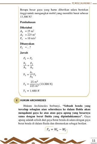 Hukum Archimedes berbunyi, “Sebuah benda yang