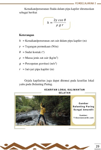 Kenaikan/penurunan fluida dalam pipa kapiler dirumuskan