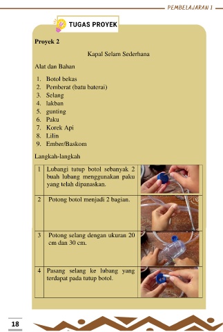 1 Lubangi tutup botol sebanyak 2
