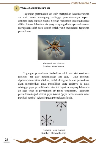 permukaan terjadi akibat gaya kohesi (gaya tarik-menarik antar