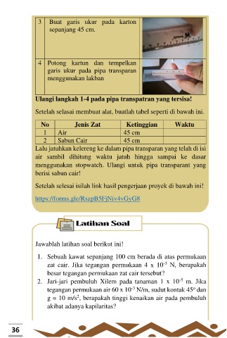 tegangan permukaan air 60 x 10 N/m, sudut kontak 45 dan
