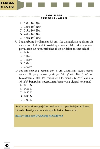 9. Suatu tabung berdiameter 0,4 cm, jika dimasukkan ke dalam air