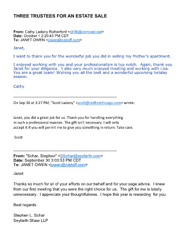 Thanks so much for all of your efforts on our behalf and for your sage advice. I knew