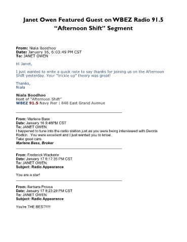 Janet Owen Featured Guest on WBEZ Radio 91.5