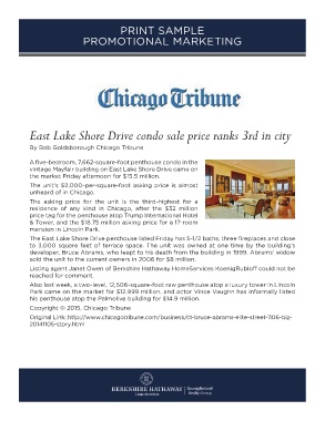 East Lake Shore Drive condo sale price ranks 3rd in city