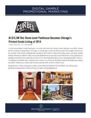hit the market in downtown Chicago. A week ago, a raw 12,500 square foot duplex residence