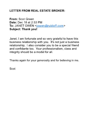 LETTER FROM REAL ESTATE BROKER: