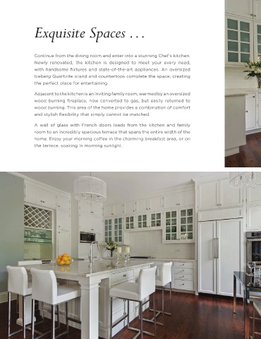 Continue from the dining room and enter into a stunning Chef’s kitchen.