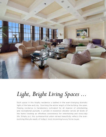 light of the lake and city. Spanning the entire length of the building, the open,