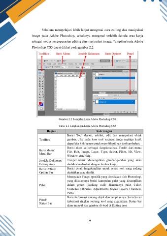 Tabel 2.1 Lingkungan kerja Adobe Photoshop CS5