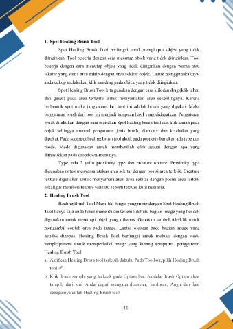 dipakai. Pada saat spot healing brush tool aktif, pada property bar akan ada type dan