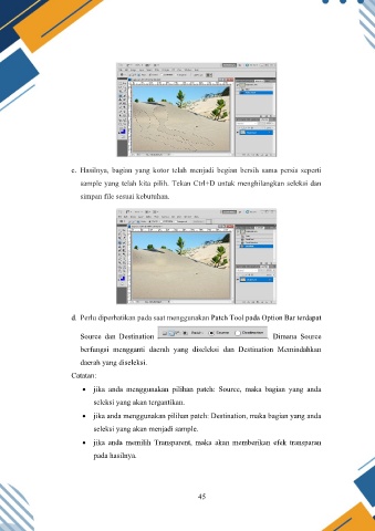 d. Perlu diperhatikan pada saat menggunakan Patch Tool pada Option Bar terdapat