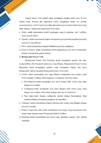 d. Erase to history: untuk menentukan hasil penghapusan area pixel berdasarkan