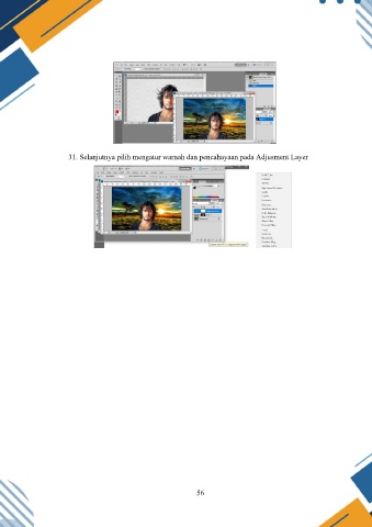 31. Selanjutnya pilih mengatur warnah dan pencahayaan pada Adjusment Layer 56