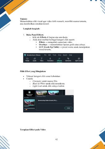 Menambahkan efek visual agar video lebih menarik, memiliki nuansa tertentu,