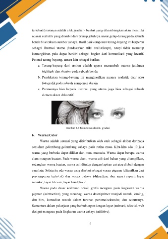 benda bila terkena sumber cahaya. Hasil dari komponen terang-bayang ini berperan