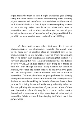 created by God. All animals depend on life being as it should be