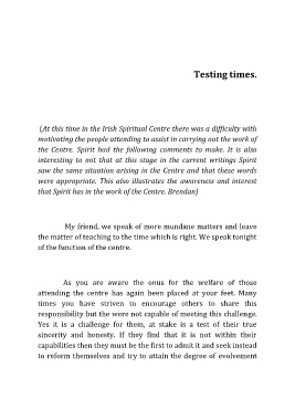 (At this time in the Irish Spiritual Centre there was a difficulty with