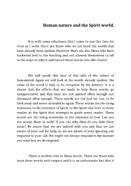 Human nature and the Spirit world.