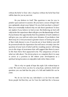 without the belief in God. Life is hopeless without the belief that God