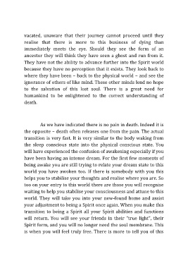 your adjustment to being a Spirit once again. When you make this