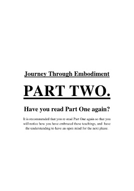 Journey Through Embodiment PART TWO. Have you read Part One again? It is recommended that you re-read Part One again so that you will notice how you have embraced these teachings, and have the understanding to have an open mind for the next phase.