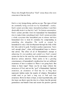 awareness of God, and not the “god” of humankind. Spiritual