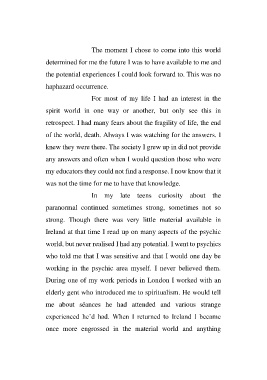 experienced he’d had. When I returned to Ireland I became