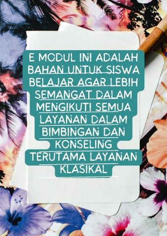 E MODUL INI ADALAH BAHAN UNTUK SISWA BELAJAR AGAR LEBIH SEMANGAT DALAM MENGIKUTI SEMUA LAYANAN DALAM BIMBINGAN DAN KONSELING TERUTAMA LAYANAN KLASIKAL
