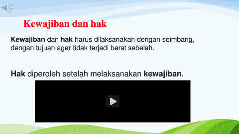 Kewajiban dan hak Kewajiban dan hak harus dilaksanakan dengan seimbang, dengan tujuan agar tidak terjadi berat sebelah. Hak diperoleh setelah melaksanakan kewajiban.