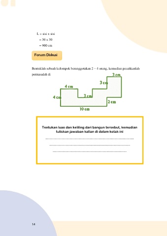 Tentukan luas dan keliling dari bangun tersebut, kemudian