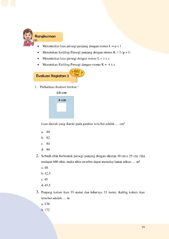 3. Panjang kolam ikan 55 meter dan lebarnya 33 meter. Kelilig kolam ikan