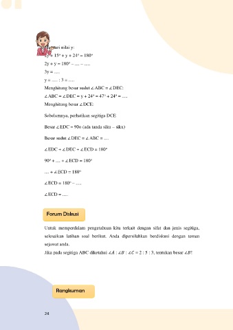 ∠ABC = ∠DEC = y + 24 = 47 + 24 = .....