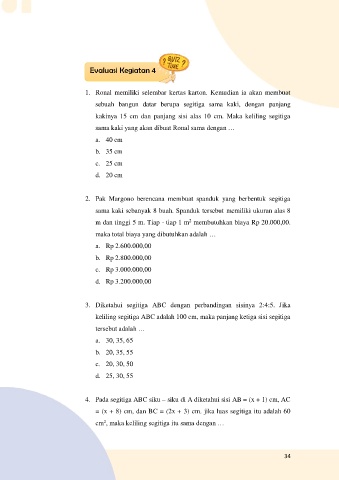2. Pak Margono berencana membuat spanduk yang berbentuk segitiga