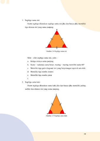 Suatu segitiga dikatakan segitiga sama sisi jika dan hanya jika memiliki