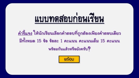 มีทั้งหมด 15 ข้อ ข้อละ 1 คะแนน คะแนนเต็ม 15 คะแนน
